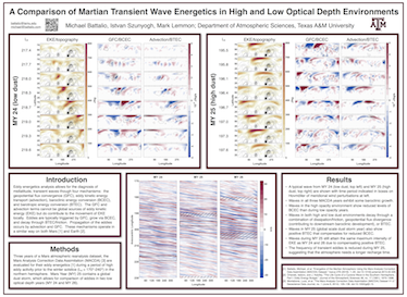 My research involves the energetics of transient waves and in dust devils on Mars.