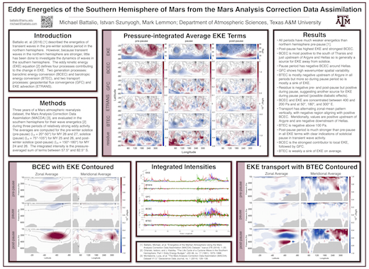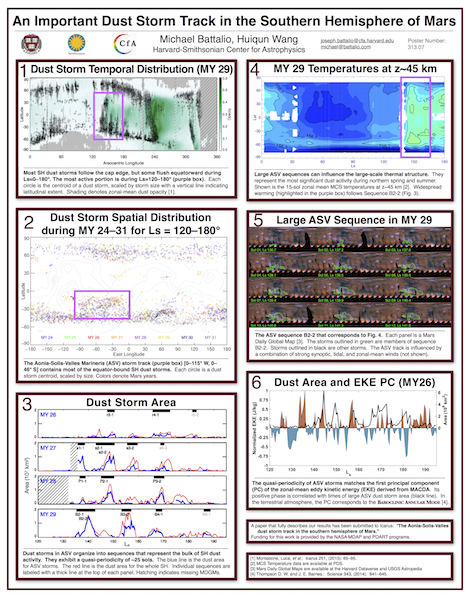 I was previously a postdoctoral fellow at the Harvard-Smithsonian Center for Astrophysics, studying the development histories of Martian dust storms, have a Ph.D. in Atmospheric Science from Texas A&M University, an MS in Meteorology from Mississippi State University, and